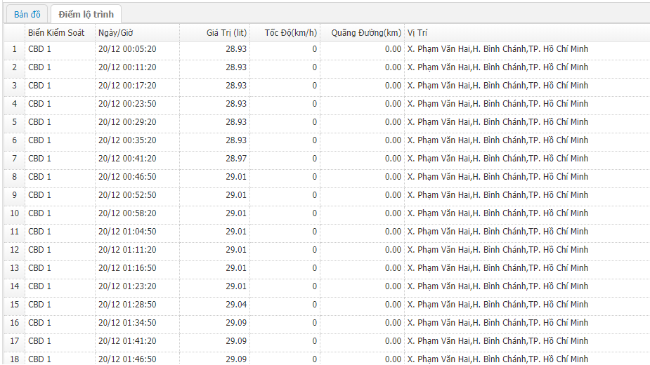3. Chi tiết báo cáo điểm lộ trình tương ứng với số lít nhiên liệu đã tiêu hao