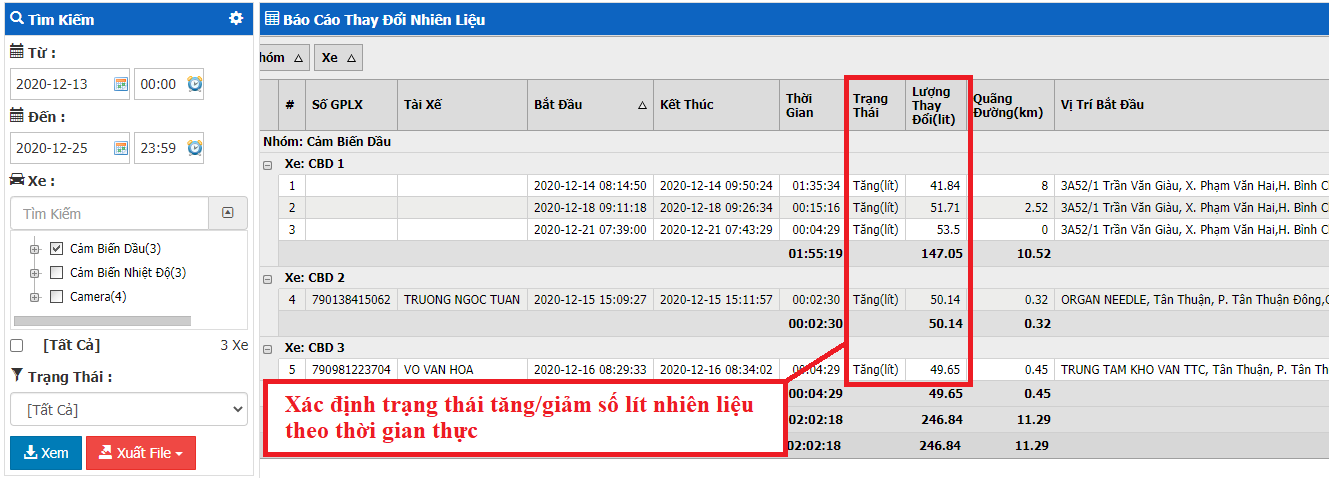 4. Quản lý việc thay đổi tăng/giảm nhiên liệu theo thời gian thực