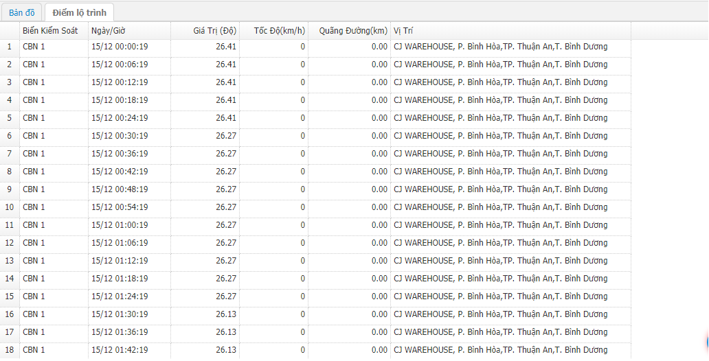 3. BÁO CÁO CHI TIẾT ĐIỂM LỘ TRÌNH THAY ĐỔI NHIỆT ĐỘ