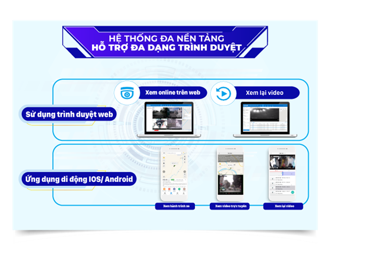 - Hệ thống giám sát trực tuyến: định vị GPS trực tuyến, lịch sử lộ trình, tốc độ di chuyển, hành vi tài xế.