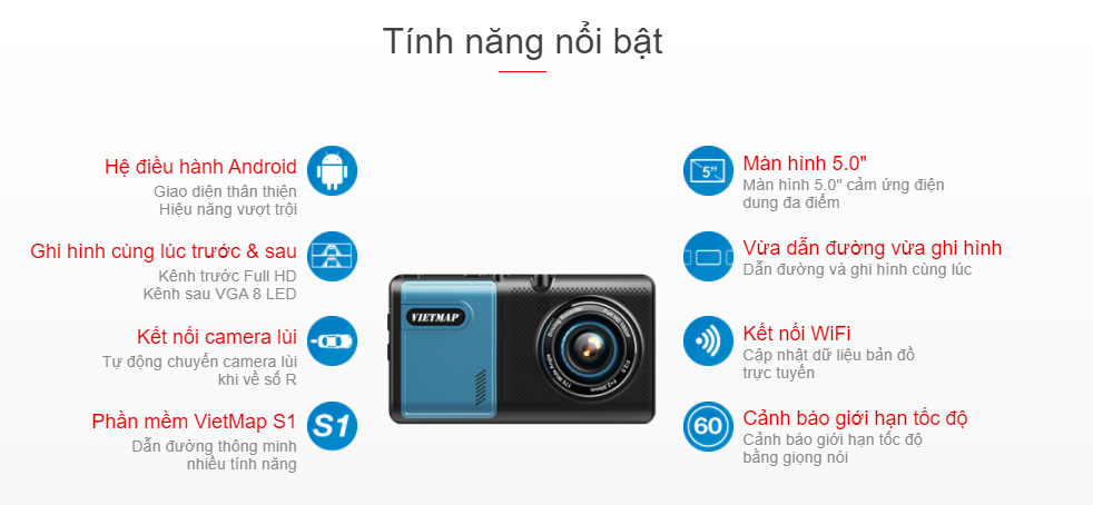 Thiết bị đa chức năng vừa dẫn đường vừa làm camera hành trình ghi hình trước & sau cùng lúc. Giúp tài xế yên tâm với chỉ với một thiết bị VIETMAP A50
