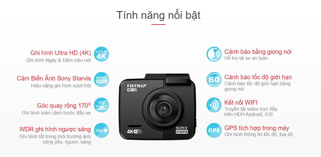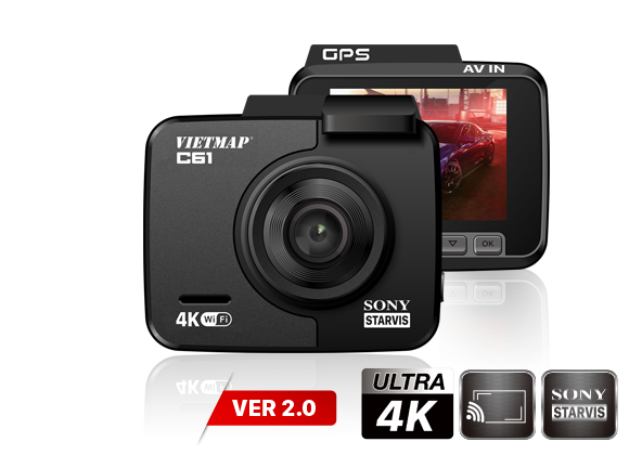 VIETMAP C61 được trang bị chip xử lý hình ảnh cao cấp giúp ghi hình siêu sắc nét với độ phân giải cao Ultra HD 4K cùng với thông tin tốc độ, tọa độ.